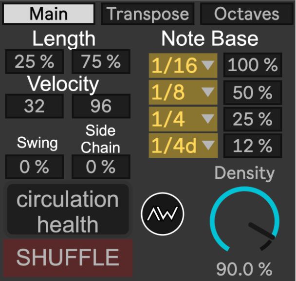 • Density, with a nice feature as non triggered notes are still generated but without being active